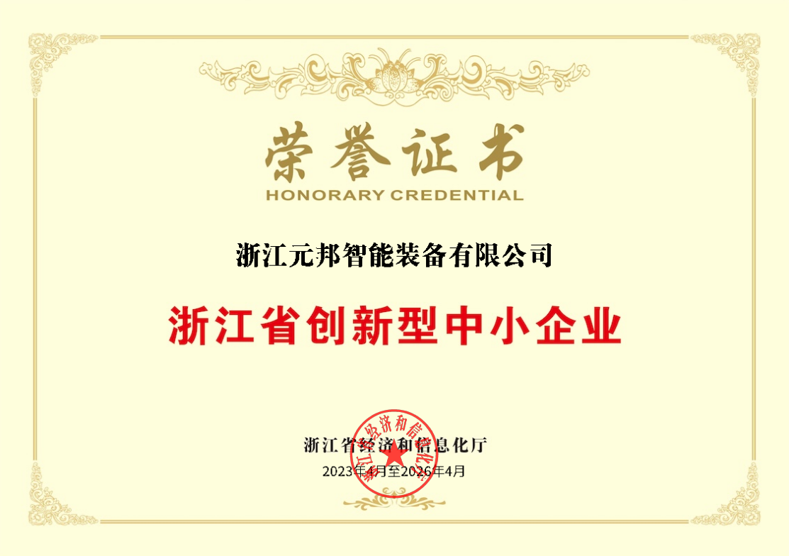 浙江省創(chuàng)新型中小企業(yè)榮譽(yù)證書